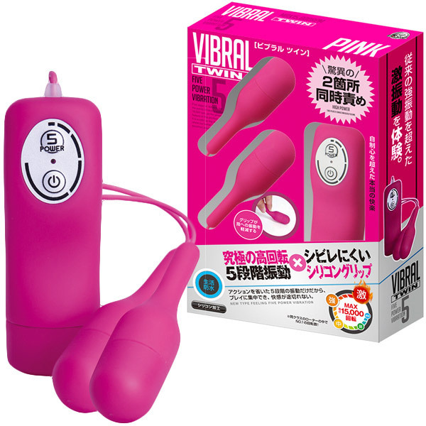MAX15000回転!驚異の高速回転が敏感な箇所を容赦なく責める、究極のダブルローター「ビブラル ツイン ピンク」(生活防水仕様)です。
