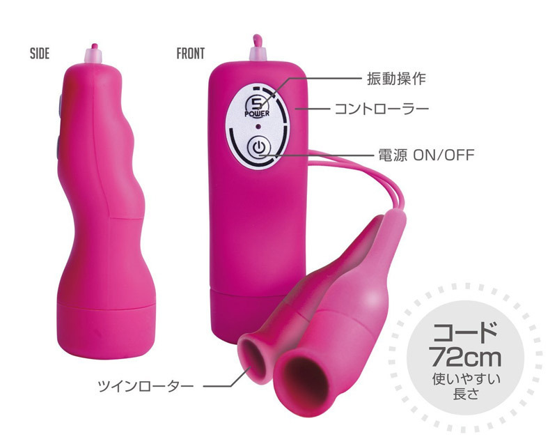 ●痺れを軽減するシリコン加工●W責め可能な2個のダブルローター●ポイント責めしやすいドーム型ヘッド●誰もが悶絶する5種類のハイパワー振動●お手入れ簡単・いつでも清潔さを保つ生活防水●初心者でもすぐに扱えるボタンスイッチ。