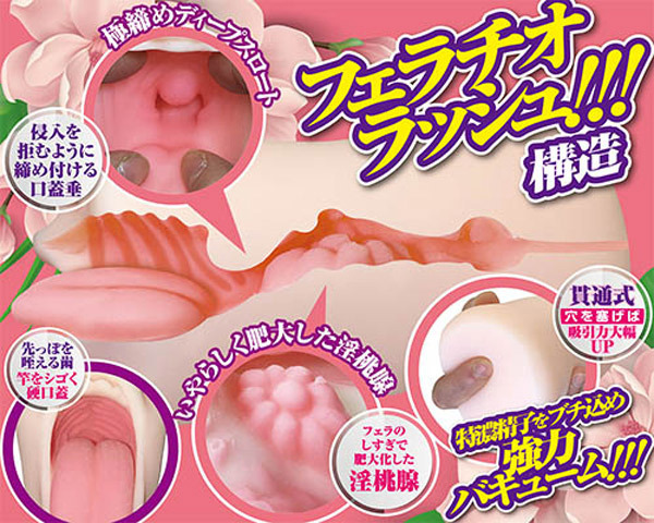 リアル造形のフェラチオホールで強力バキュームのじゅるじゅるプレイをお楽しみ下さい。