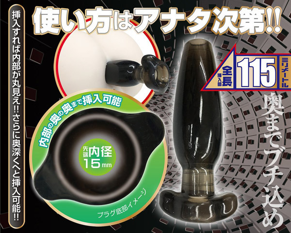 さらに奥まで丸見え!奥深くまで挿入できるロングタイプの貫通式アナルプラグ。