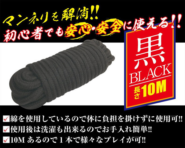初心者でも簡単♪ソフトSMにぴったりな綿素材を使用した緊縛ロープ「簡単拘束ロープ 黒」。