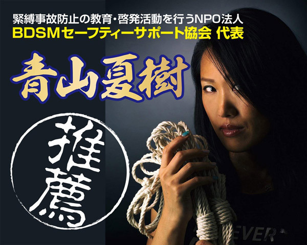 緊縛プレイでマンネリ解消!緊縛事故防止の教育・啓発を行うNPO法人BDSMセーフティーサポート協会代表の女緊縛師「青山夏樹」推薦!安心・安全に使用できるSMグッズです。