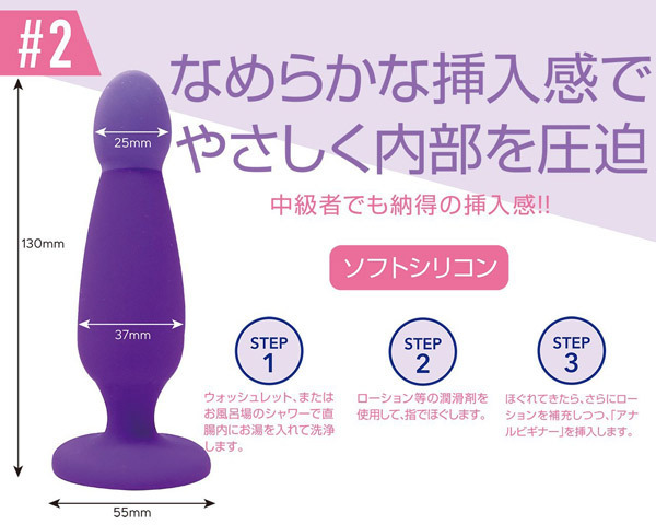 気軽かつ快適にアナルプレイ!挿入感抜群なしなやか素材のアナルプラグ「アナルビギナー #2」。