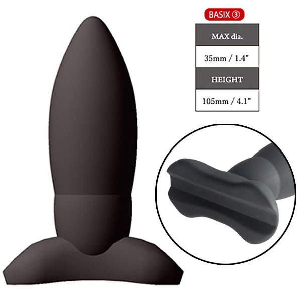 ベーシックシリーズはまるで座薬のように『挿れやすく留まりやすい』絶妙な角度に設計されたボディが特徴!また、最大径とくびれ部分の差を小さくする事でより拡張に適したアイテムに仕上がりました。