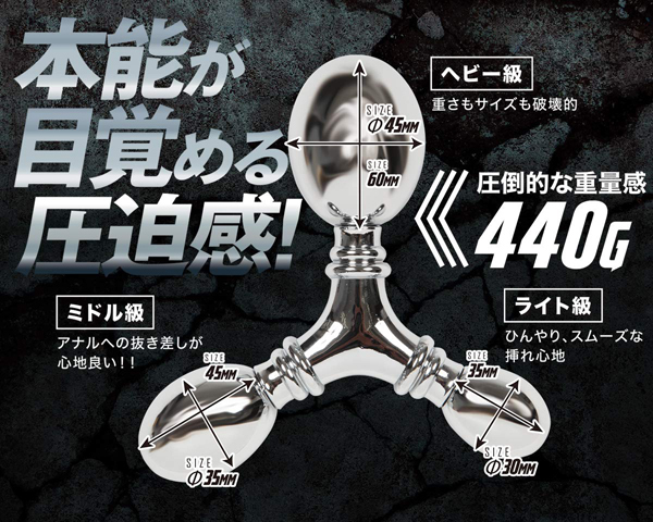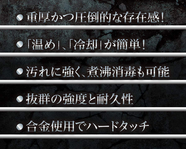 圧倒的な重量感とひんやりとした挿入感が楽しめるアルミニウム合金製のヘビー級アナルプラグシリーズ。