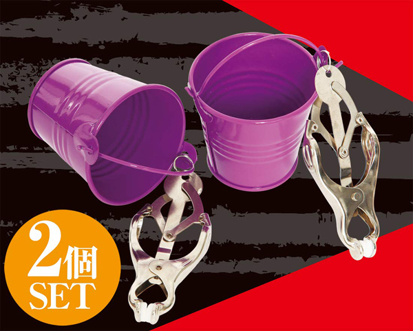 バケツの重みで乳首責め!水や砂利などお好きなものを入れて、乳首に荷重をかける…ゆっくり荷重をかけるもよし、一気に荷重をかけるもよし、工夫次第で様々な使い方ができる。強烈な力で挟み込むクリップ付きで、乳首に強烈なインパクトを与えます。