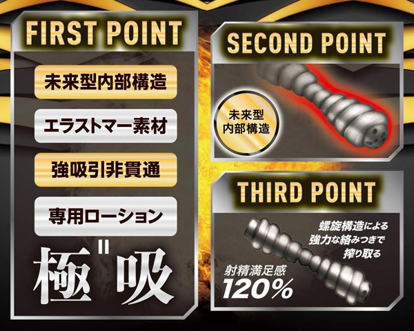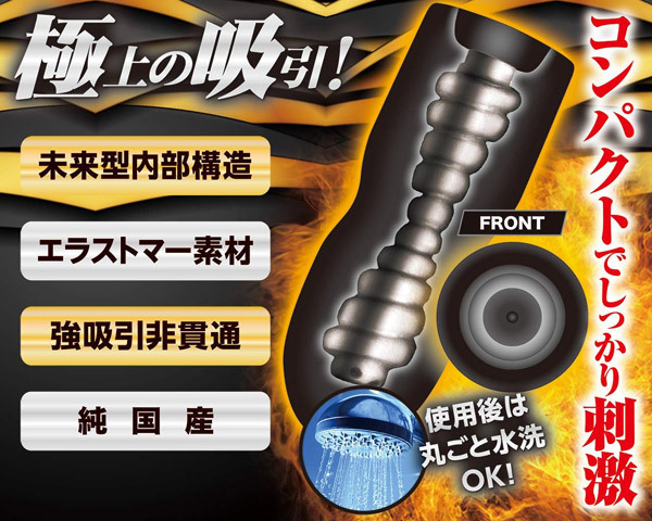 射精満足感120%!!小型ホールのポテンシャルを超越した未来型内部構造を搭載。強吸引の刺激がマッハで射精を促す!螺旋構造によるヒダが生み出す極上の吸引で亀頭にしっかり絡みつき搾り取る。●専用ローション付き●使用後は丸ごと水洗いOK!