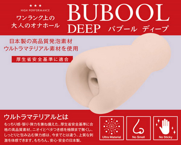最深部の「イボ」が男の快感を呼び覚ます「バブール ディープ」根元までしっかりくわえ込むバキューム構造に加え、溝の深い大き目の横ヒダが竿全体に絡みつき快感を与えます。