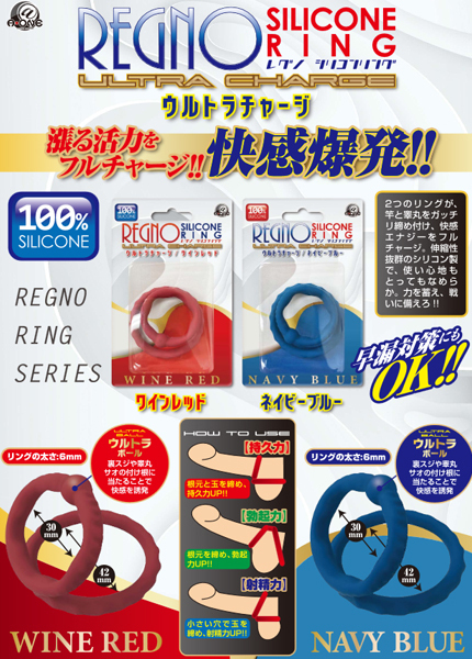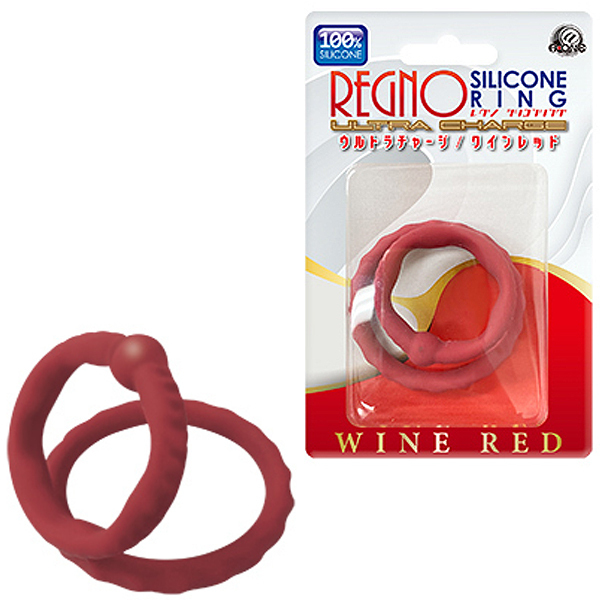 2つの輪でサオと睾丸を締め付ける!伸縮性に優れたシリコン製のペニスリング(赤)。持久力・勃起力・射精力に悩む男性をサポート!さらにウルトラボールで裏スジや付け根を刺激し快感を呼び起こす♪
