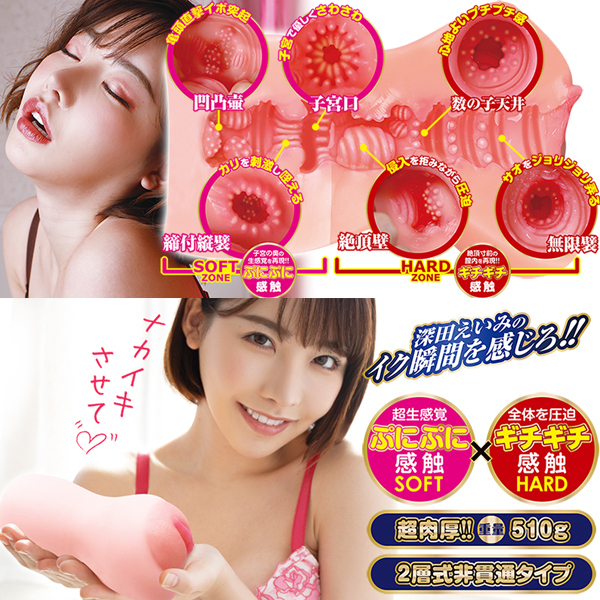 ボリューミーなFカップ爆乳&小悪魔な顔立ちで世の男性を魅了する元アイドルAV女優「深田えいみ」さん監修!イク手前のギュッと締まる膣内を忠実再現した非貫通オナホ。