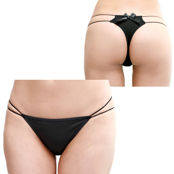 フロントサイドはキッチリしたデルタゾーンにダブルストリングデザインになったシンプルなタイプで、バックはそのダブルストリングから美尻を演出してくれる小さめな生地使いと、サテン生地のリボンでちょっとした可愛さもプラス♪