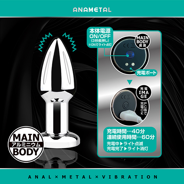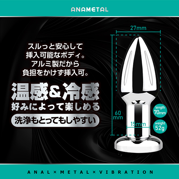 遠隔リモートプレイが可能なアナル用メタルプラグ。