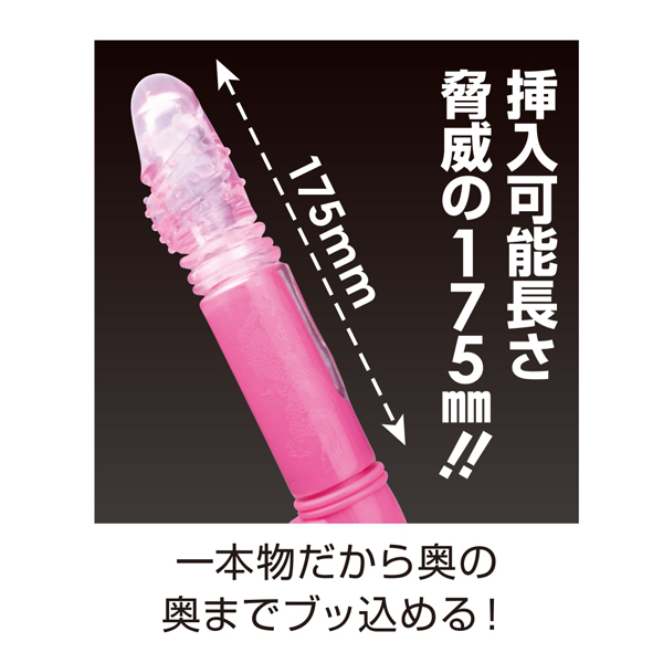 約17.5cmのロングボディで最奥まで突き上げる!Gスポ刺激にこだわった電池式ストレートバイブ(黒)。6Vの強烈ピストンで激しく突き上げ先端部分で振動刺激!挿入しやすいストレート形状にスイング&ピストン、36種類の振動パターンを搭載した高性能バイブ♪生活防水&静音設計
