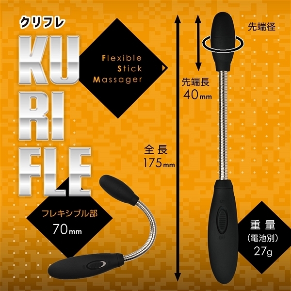 フレキシブルに曲げられるので、セルフでも挿れたり当てたりと使いやすい責め用スティックローターです♪カラーはシックなブラックで、お好みの部位に自由に角度をつけながら当てたり挿れたりできるので汎用性は抜群!軽量で使いやすく、先端やグリップ部分はマットコーティングされているので肌心地も良く長時間使っても疲れにくい♪コンパクト形状でスムースで優しい素材だから当て心地もよく、気分が上がってきたら挿れるのもありですね!電源は単四電池1本で、優しい振動が特徴のスティックマッサージャーです。