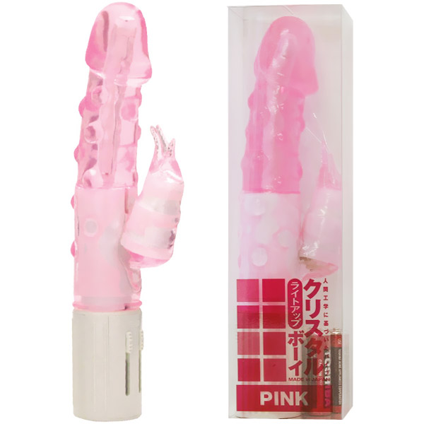 人間工学に基づいた最先端のバイブ「クリスタルボーイ ピンク」。美しいスケルトンボディは、暗闇でも怪しく光り輝き、ムードは盛り上がることマチガイなし!本体の表面の大粒のイボイボに加えて、カリの直径は約3.8cmと存在感抜群!クリバイブにいたっては3枚舌仕様!スイングとバイブの個別動作が可能…と、至れり尽くせりの優秀バイブです。単三電池×3本使用