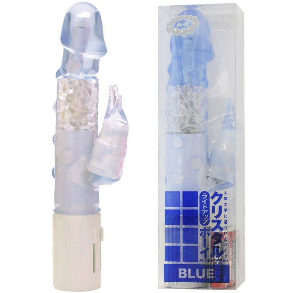 人間工学に基づいた昇天必須の快感バイブ「クリスタルボーイパール入り ブルー」。本体内部に贅沢なパールを内蔵し、使用時にはその部分が怪しくライトアップ!カリの直径約3.8cmと巨根マニアの方も納得!子機も3枚舌仕様と抜かりなし!さらにスイングとバイブの個別動作が可能…と、見た目と性能どちらも兼ね備えた次世代バイブ!
