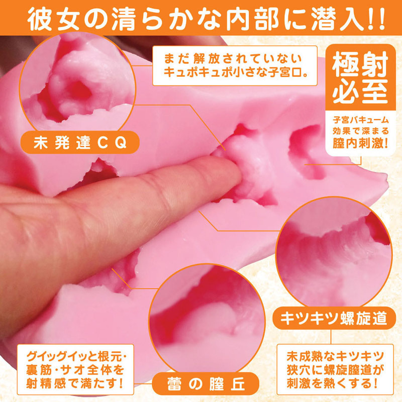 「ロリCQ」は、キツキツの子宮(CQ)を再現したオナホールで、キツキツのCQが好きな方におすすめです♪挿入直後に未発達の膣丘が感じられ、内部でしっかりと締めつけてくれます。