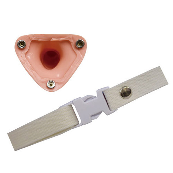 ●反り立った逞しいディルド●全長13cm×最大径3.5cm●亀頭部分は柔らか素材仕上げ●サック風に装着する空洞タイプ●三か所をスナップボタンで固定●ベルトはアジャスター調節可能。