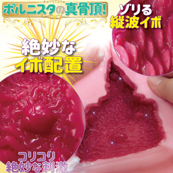 ビッグバウンズ!どーんと530g!極生ぬめるヌルヌル感。まったりした中に絶妙配置された昇天コリコリイボが心地いい!くびれ部分をぐるりと回してお好きな所にグイッとポイント攻め。絶妙なイボ配置とゾリる縦波イボがポルニスタの真骨頂!緩急のついたリアル生感触を体験しよう。