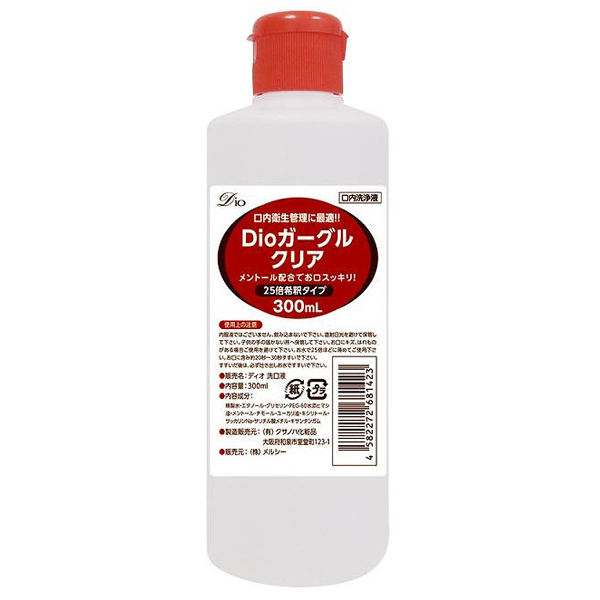 食後や口臭対策に!メントールを配合した無色透明の洗口液「Dioガーグル300ml」25倍希釈タイプ。水で薄めて口内をゆすぐだけで綺麗さっぱりしっかり殺菌!メントールとユーカリ油の爽快感で口の中もスッキリ♪クリアカラー※当店で購入したアルコール消毒製品を転売すると処罰対象となる可能性があります、ご注意ください。