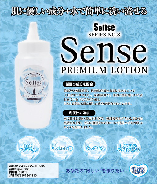 リグレの大人気「Senseローション」シリーズ最高峰!美肌に嬉しい白金ナノコロイド、ヒアルロン酸を贅沢に配合した、高保湿高粘度なプレミアムローション350ml。ハチミツ容器でチューっと出しやすく、水で直ぐに洗い流せるため後処理も簡単!高保湿なうえ使い易さにもこだわった贅沢仕様の高粘度ローション。