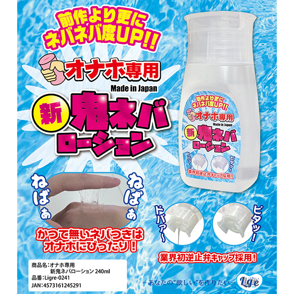 鬼のような粘りが楽しめる強粘度のローション「オナホ専用 新鬼ネバローション」です。滑りがよく、特有のねっぱり感がもらたすオナホ内部の構造変化はこのローションでしか味わえません♪ボトルキャップには逆止弁機構を搭載!適量を注入しやすく、スパッとローションを切ることができて便利にお使いいただけます♪