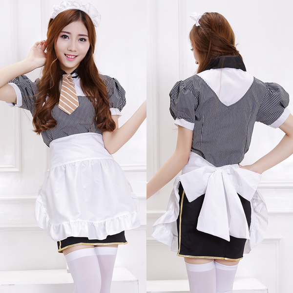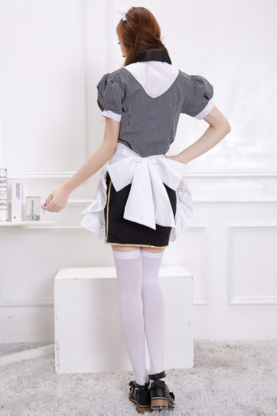 | ■ サイズ・ セット内容 | Mサイズ(平置き):トップスB43cm・着丈51cm・肩幅43cm・袖丈19cm スカート丈52cm・W32〜38cm セット内容:トップス(サイドファスナー)、スカート(ウェストゴム入り・背面ファスナー、パニエ一体型)、エプロン、カチューシャ、ネクタイ(ゴムバンド仕様) | ||