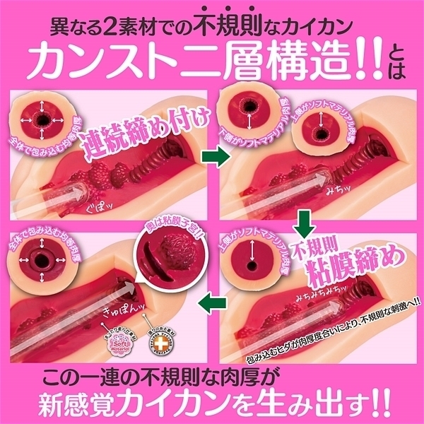 入りは細かなつぶつぶ突起の連続締め付けでお出迎え!突き進んだ先には更に締まった肉厚ヒダで不規則な粘膜締め!最後は奥の粘膜子宮にジュポッッ!