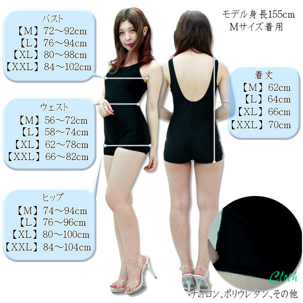 | ■ サイズ・ セット内容 | XLサイズ:B80〜98cm・W62〜78cm・H80〜100cm 着丈66cm セット内容:水着単品(前身頃全面に裏地付き、胸部にパット付き) 素材:ナイロン、ポリウレタン、その他 | ||