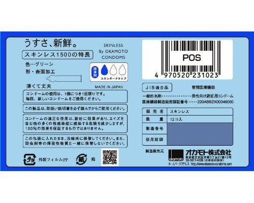 スキン(皮膜)+レス(〜のない)の名の通り、スキンがあることを感じさせない薄さでパートナーの温もりや感触もリアルに感じられ、プレイが燃え上がること間違いなし!表裏のわかりやすい加工も嬉しい、爽やかなグリーンのコンドームです。