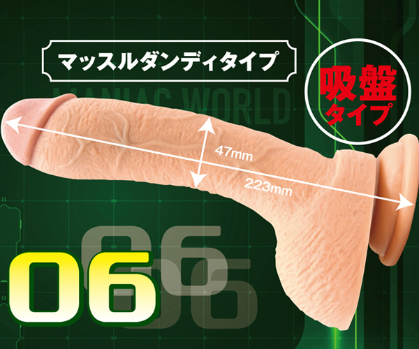 前作「マニアックワールド」の新作!マッチョな超肉感ディルド「マッスルダンディタイプ」が登場。長さ約22cmのロング仕様、太さは挿入し甲斐のある最大4.7cm!内側は筋肉を感じさせる硬い芯入りで、人肌のように柔らかな皮で包んだ二層構造で仕上げています。特徴はなんといっても生々しいボディ!極太ロングな男根にマニアも唸ること間違いなし♪底面は強力吸盤付き