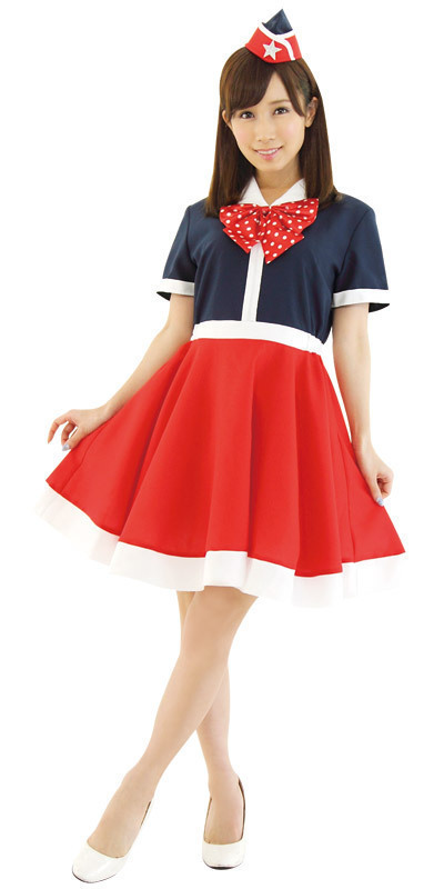 レトロながらもポップな雰囲気漂うキャビンアテンダント風コスチューム。