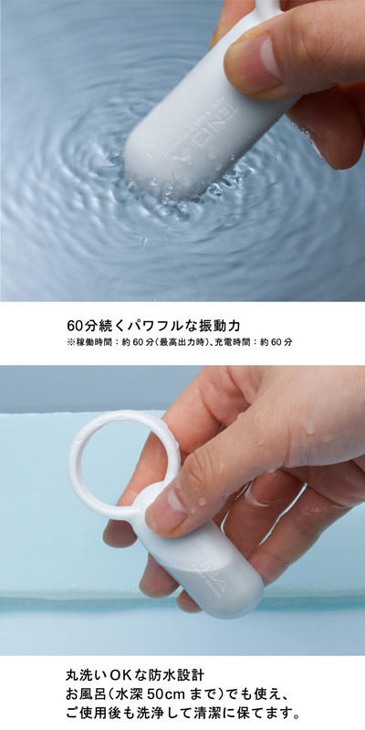 ●男性器に通して使用する電動リング●ソフトシリコン製でフィット感抜群●60分のフル充電で60分連続使用可能●強弱×5・リズム×2の合計7種振動●電源ON/OFFはボタン長押し●水深50cmまでOKな防水仕様(USB差込部金属もサビ・感電はありません)。