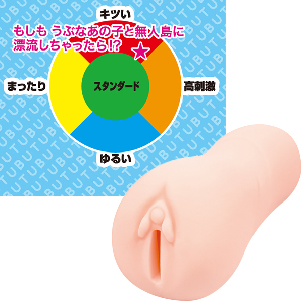 つぶつぶスパイラルが絡みつく!斜めに配置されたイボリングが特徴的な非貫通オナホ「もしも うぶなあの子と無人島に漂流しちゃったら!?」です。