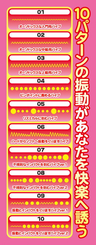 ●エラストマー素材のクリアボディ●全長8.5cm、最大径3cmのコンパクトサイズ●柔らかく抜けにくいオルガスター型●クリトリス刺激用の凸凹付き●取り外し可能なミニローター内蔵●ボタン長押しで電源OFF●リズミカル振動を含む全10パターン●生活防水&静音設計。