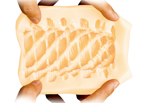 横ミゾ×縦ヒダスパイラル×皮膜状の横ヒダ構造が極上の快感を生み出す!まったり楽しめる高弾力&高伸縮素材の日本製オナホ。