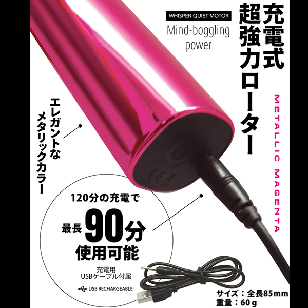 脅威のハイパワーを誇るバイブレーションが特徴で、振動音が小さく防水機能も優れているので使う場所を選びません♪電源は充電式!電池切れの心配もなく、超強力なローター振動を存分にお楽しみ頂けます♪振動パターンは10種類!ボタン長押しで電源のONとOFFが切り替わるので操作も簡単です♪充電用USBケーブル付属。