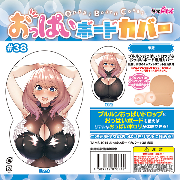 これさえあれば可愛い二次元嫁のおっぱいが楽しめる!大人気「おっぱいボードカバー38 米蔵」が新登場♪別売りのプルルンおっぱいドロップとおっぱいボードを使えばリアルなおっぱいポロリが体験できる!肌触り抜群の2WAYトリコット生地を採用しているので、触っても抱いても心地良い♪もちろん観賞用としてもお楽しみいただけます!実用新案登録出願中。