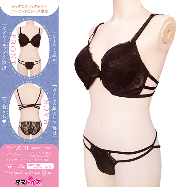 | ■ サイズ・ セット内容 | パッケージ:23.0×14.0×5.5cm 本体:サイズ2L(男性用Mサイズ) 【ブラジャー】アンダーバスト:約80cm バスト:約93cm カップ:Bカップ 【ショーツ】ヒップ:約97〜約105cm | ||