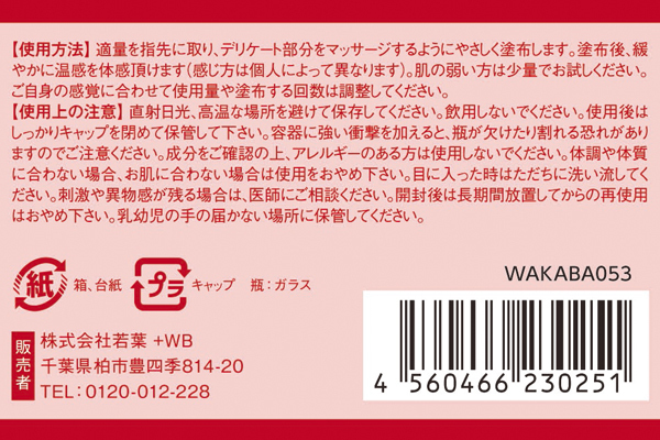 良い香りがふんわり漂う♪滑りを良くしながら感度を高める温感仕様の女性用マッサージオイル。優雅で上品な香りのローズオイル、抗菌殺菌作用のあるレモングラス、官能的なフランキンセンスなどの成分を配合!業界初ハーブオイルを使用した画期的なデリケートゾーン用のオイルです。適量塗り込むとジンワリ温まり、高揚感&感度が高まります。容量5ml