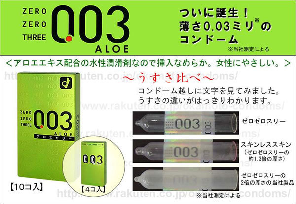 挿入なめらか!女性に優しい、薄さ0.03mmの極うすコンドーム(10個入)。オカモト社が追い求め続けてきた「薄さゼロへの挑戦」を遂に実現!女性にやさしいアロエゼリー配合で、今までにない滑らかさが体感できます。触って、装着して、あまりのうすさにビックリ!まるで素肌感覚のコンドームを是非体感してみて下さい。