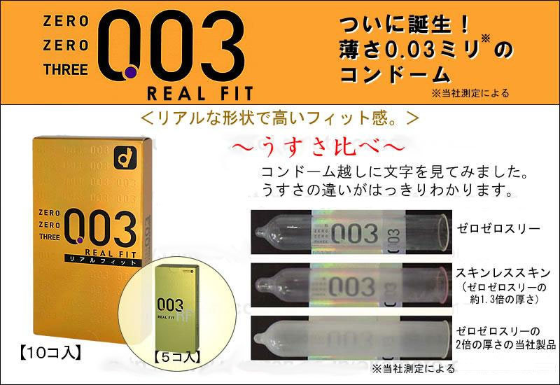 男のカタチにこだわった異次元の密着感!薄さ0.03mmのコンドーム(10個入)。あのオカモト社が「薄さゼロへの挑戦」を遂に実現!精液だまりを無くしたリアルフィット形状により、高いフィット感が得られます。潤滑剤もたっぷりなので引っかからずに簡単装着!極薄+リアルフィットな気持ち良さを、是非体感して下さい。