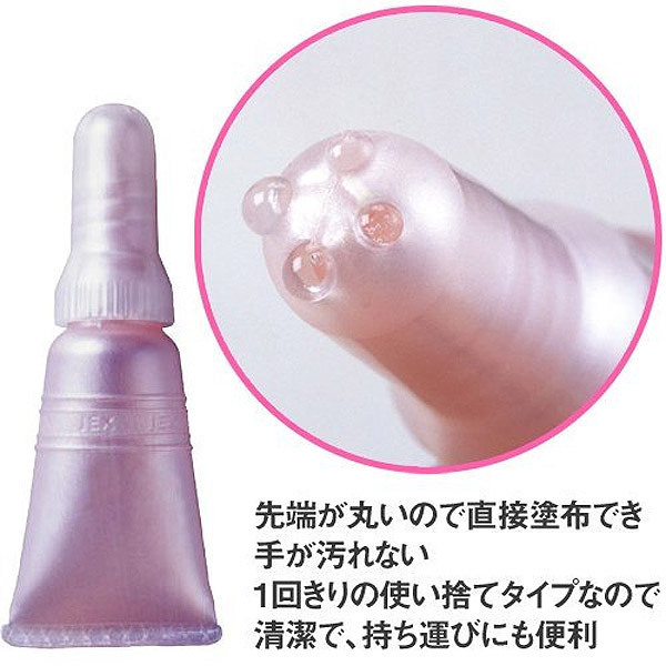 無駄なくキレイに潤いをプラスできる簡単設計で塗り漏れなし!ノズル部分をクルっと回転させてチューブを押すだけで、先端に空いた4つの穴から均等にゼリーが出てきます。