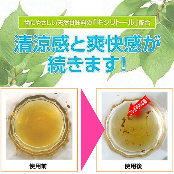 口内にこびりついた口臭の原因となるタンパク質を絡め取り、汚れを固めて排出!爽やかなキシリトールと見て実感できる爽快感で気分もスッキリ♪歯磨きの前後、会議やデートなど人と会う前、ニオイの強い料理を食べた後や喫煙後に。