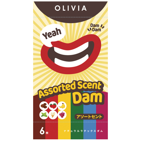 って方にお得なアソートセット♪ナメて、透かして!新感覚!やや薄めなシートの生感覚が素晴らしい!好きな香りを楽しみながらセーフセックス♪コンドームのような箱にパウチ状態で6個入っている、フレーバー付きのラテックスシート。