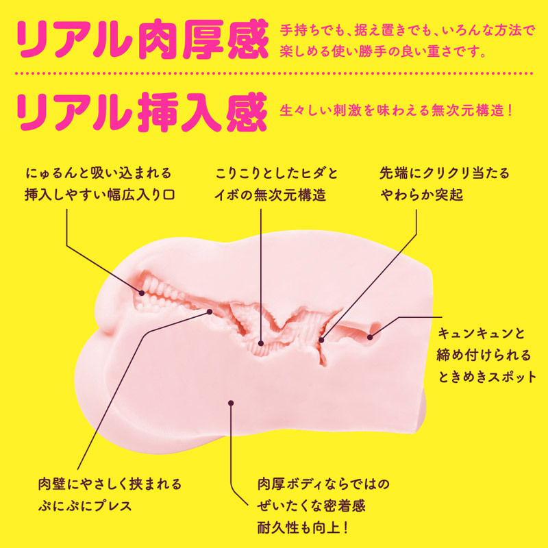 ねっとりと吸い付き、使うほどペニスに馴染む薄いピンクの素材を採用!超肉厚、置きオナもできてハンディにもなるトルソー型オナホールです。