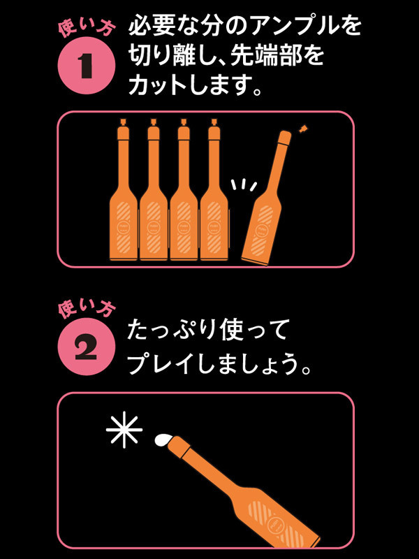 ●清潔で安心&携帯に便利なアンプル型●一本で一回分(使い切りタイプ)●先端部分を切り離すと極細ノズル●奥の奥にまで適切な量を注入。