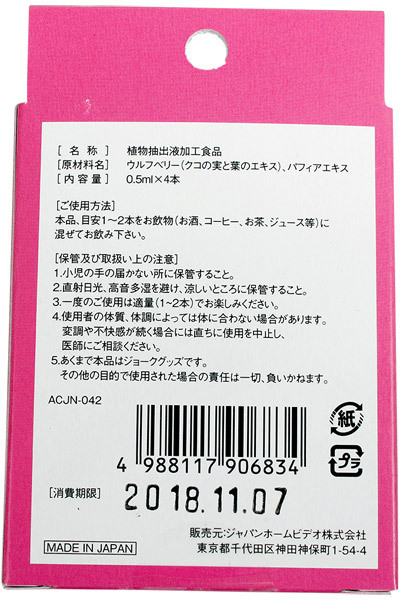 「濡れアワビ (淫乱)」はウフルベリーとバフィアエキスを配合したリキッドコスメ。1〜2本を目安にお飲み物に混ぜてお飲み下さい。