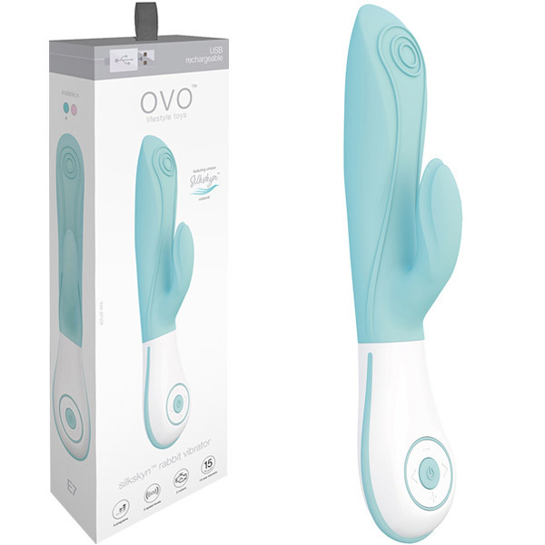 離したくない、心地よさ!シルクスキン素材を使用したドイツブランド『OVO(オヴォ)』の充電式バイブレーター「E7 ラビットバイブ シルクスキン アクア」。