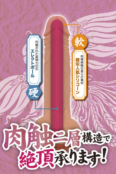 高弾力を生み出すエレクトポールを内側に、外側を本物のような柔らか質感の素材で固めた肉触2層構造!壁や床、浴槽にも張り付く強力吸盤付きで自宅のどこでも楽しめます♪初心者さんから上級者さんまで幅広い層にお使いいただける高級ディルドです。